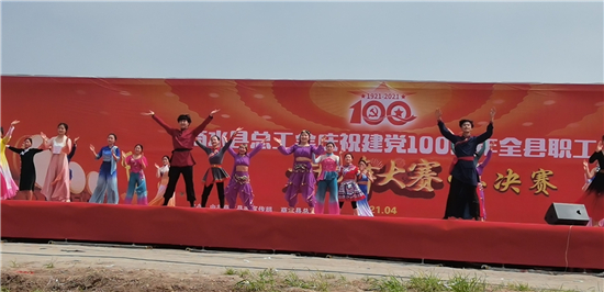 為隆重慶祝建黨100周年和喜迎五一國際勞動節(jié),近日,由中共商水縣委宣傳部、商水縣總工會主辦的商水縣慶祝建黨100周年全縣職工廣場舞大賽總決賽在沙潁河南岸鄧城張灣舉行??h委常委、宣傳部部長李本磊,縣委常委、縣政府副縣長崔巖,縣政協(xié)副主席彭發(fā)光,縣總工會主席盧紅兵和縣總工會班子領(lǐng)導以及各基層工會主席和廣大干部職工群眾8000多人到現(xiàn)場觀看比賽。