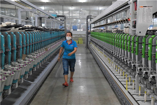 4月20日,位于商水經(jīng)濟(jì)技術(shù)開發(fā)區(qū)的周口市佳利達(dá)紡織(集團(tuán))有限公司員工正在車間察看機(jī)器運(yùn)行情況。據(jù)了解,該公司系招商引資企業(yè),現(xiàn)有職工369人,擁有10萬紗錠生產(chǎn)線,2019年以來獲得國家專利19項(xiàng),實(shí)現(xiàn)了生產(chǎn)銷售自動化、數(shù)字化、智能化、信息化,先后被評為周口工業(yè)50強(qiáng)企業(yè)、河南省制造業(yè)與互聯(lián)網(wǎng)融合發(fā)展試點(diǎn)示范企業(yè)。周口日報(bào)·周道客戶端記者 付永奇攝