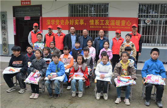 “經(jīng)過(guò)我們公司老員工、村支部書記李金棋的牽線聯(lián)系,俺一行6人今天一大早驅(qū)車近200公里到這里開展‘深學(xué)黨史辦好實(shí)事、情系工友溫暖童心’活動(dòng)。一方面是學(xué)黨史辦實(shí)事的需要,也是關(guān)愛農(nóng)民工支持地方教育事業(yè)的需要......”中建七局下屬公司在商丘市一個(gè)項(xiàng)目生產(chǎn)部的負(fù)責(zé)人黃彥光如是說(shuō)。