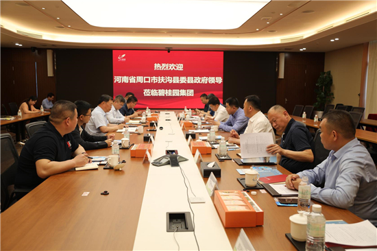 4月20日至22日,扶溝縣委書記孫紅偉帶隊(duì)到廣東碧桂園集團(tuán)考察對(duì)接項(xiàng)目,并與碧桂園集團(tuán)黨委書記、總裁莫斌,碧桂園豫中區(qū)域總裁肖鴻章,碧桂園農(nóng)業(yè)控股有限公司助理總裁兼首席人力資源官翟江海等進(jìn)行交流座談。