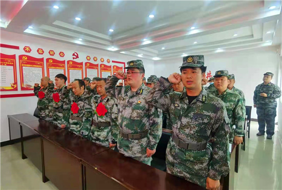 街道黨工委委員、武裝部長陳偉亞作工作報告、宣讀民兵干部任職命令,呼點、提問基干民兵隊員,并帶領(lǐng)全體民兵進行宣誓。同時新入隊民兵代表曹香龍做了發(fā)言。③7