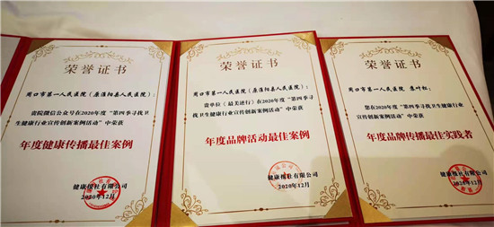 近日,健康報社印發(fā)《關(guān)于開展“第四季尋找衛(wèi)生健康行業(yè)宣傳創(chuàng)新案例暨2020年度健康報社衛(wèi)生健康宣傳先進集體和先進個人推選活動”的通知》,周口市第一人民醫(yī)院榮獲“2020年度品牌活動最佳案例”“2020年度健康傳播最佳案例”“2020年度品牌傳播最佳實踐者”三項稱號。