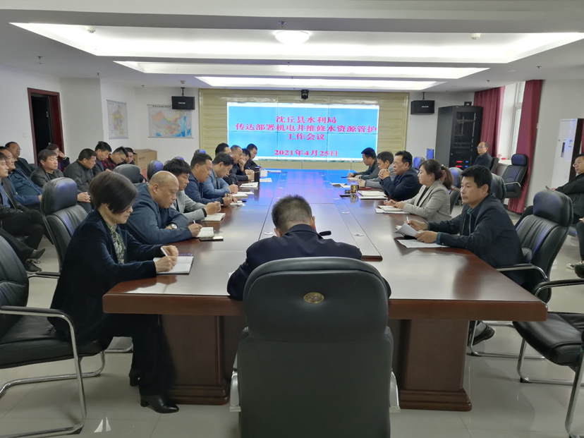 4月25日,沈丘縣水利局召開機(jī)電井維修水資源管護(hù)專題工作會(huì)議,局機(jī)關(guān)全體人員、局屬相關(guān)二級(jí)機(jī)構(gòu)人員參加會(huì)議。