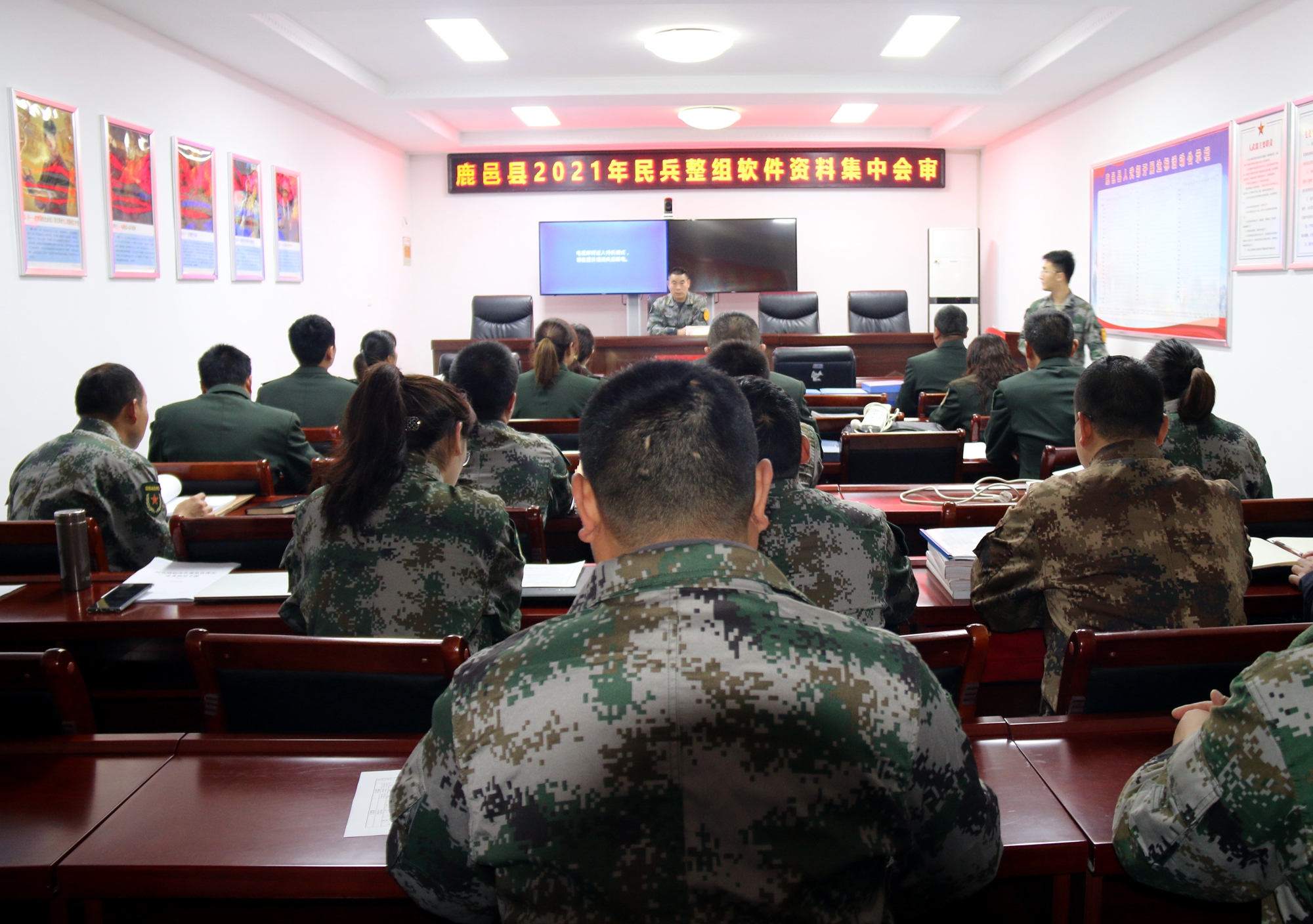 為認(rèn)真貫徹落實(shí)河南省軍區(qū)和周口軍分區(qū)民兵整組推進(jìn)會(huì)精神,扎實(shí)推動(dòng)民兵整組工作有序展開,4月25日,河南省鹿邑縣人武部在機(jī)關(guān)多媒體會(huì)議室組織召開全縣民兵整組軟件資料集中會(huì)審工作會(huì)議,對(duì)各鄉(xiāng)鎮(zhèn)、辦事處武裝部的民兵整組方案、任務(wù)和潛力數(shù)據(jù)錄入情況集中進(jìn)行督導(dǎo)檢查??h人武部政委李峰,縣人武部機(jī)關(guān)現(xiàn)役干部、文職人員、職工及各鄉(xiāng)鎮(zhèn)、辦事處專武干部參加會(huì)議。