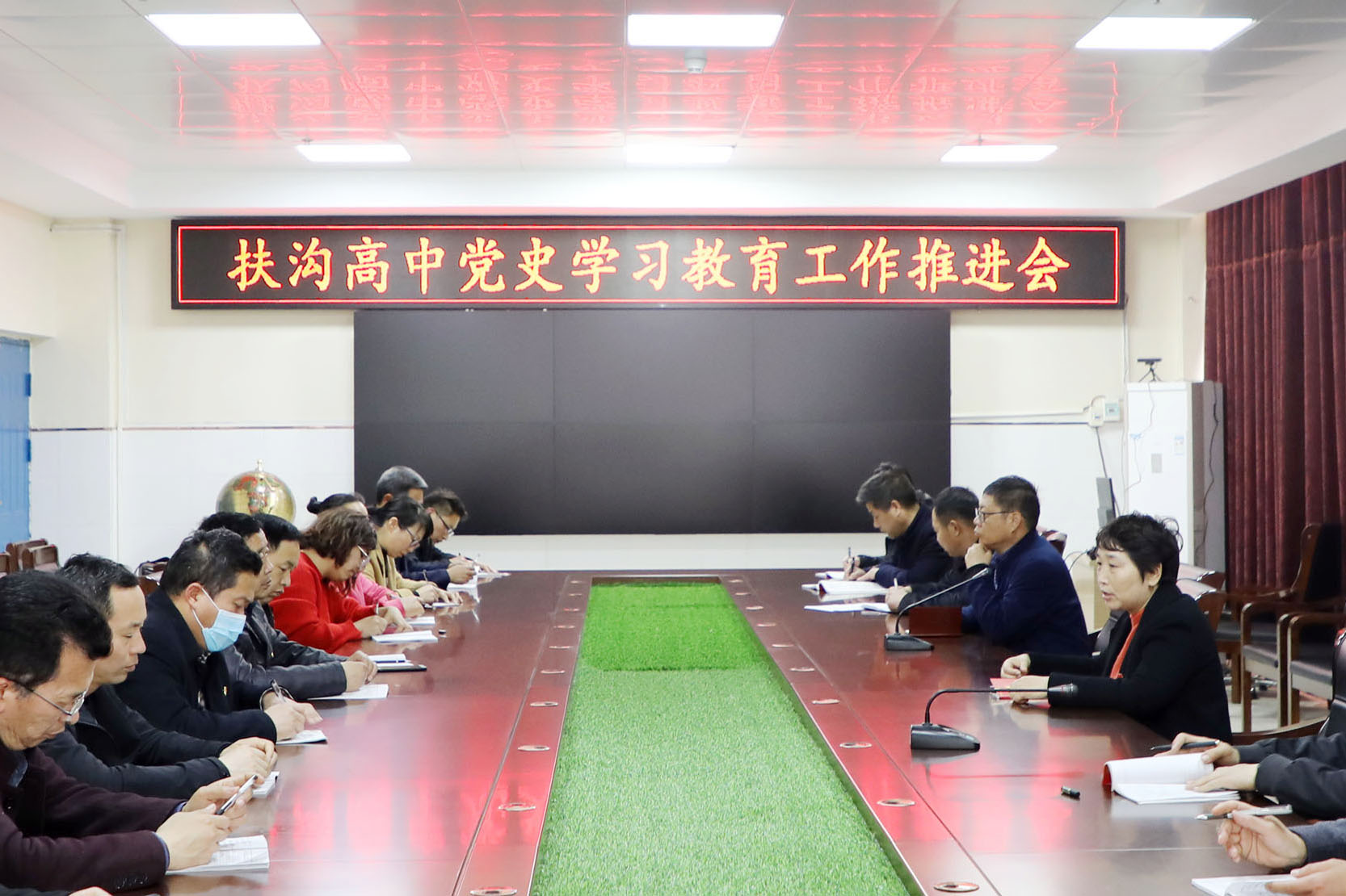 4月24日下午,扶溝高中召開黨史學(xué)習(xí)教育工作推進(jìn)會(huì),學(xué)校領(lǐng)導(dǎo)班子、各黨支部委員近30人參加會(huì)議。會(huì)議由黨總支宣傳委員李長安主持。會(huì)上,黨總支書記馮鳳云再次強(qiáng)調(diào)了黨史學(xué)習(xí)教育工作的重要意義,明確提出了以學(xué)習(xí)教育促黨員黨性提升,以黨建工作引領(lǐng)師德建設(shè)、引領(lǐng)學(xué)校發(fā)展的目標(biāo)。