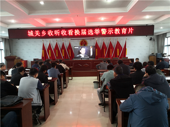 為切實樹好正確導向,選準干部,把班子配強,圓滿完成換屆工作,4月26日上午,商水縣城關(guān)鄉(xiāng)組織收看換屆選舉警示教育片。鄉(xiāng)黨委班子成員、脫貧責任組長、駐村第一書記、村黨支部書記及鄉(xiāng)機關(guān)全體人員集中收看了換屆選舉警示教育片。