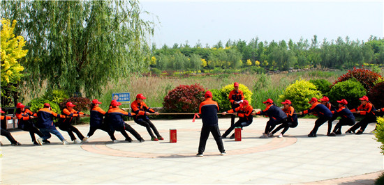 9時30分,在西華賈魯河國家濕地公園一處風景優(yōu)美的游園廣場內(nèi),拔河比賽正式開始,只見男女隊員混合分為2隊,采取三局兩勝制,隨著裁判一聲哨響,比賽拉開戰(zhàn)幕,每個隊隊員都眾志成城,團結一心,奮力使勁,不甘示弱,以團結友愛、頑強拼搏的精神投入比賽。賽場上歡呼聲、吶喊聲、加油聲、助威聲響成一片,此起彼伏,整個賽場洋溢著興奮而歡樂的氣氛。