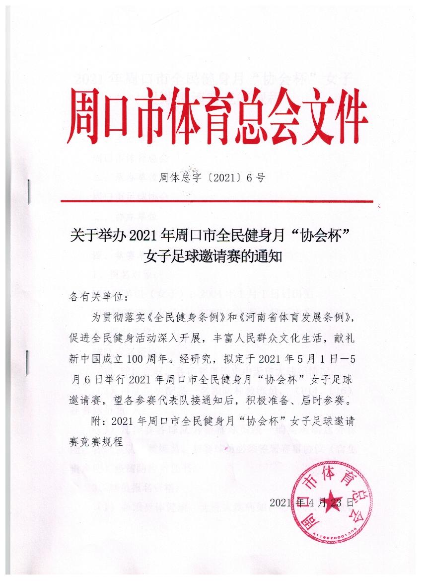近日,記者從市足協(xié)獲悉,五一期間,我市將迎來(lái)2021年周口全民健身月“協(xié)會(huì)杯”女子11人制足球邀請(qǐng)賽,屆時(shí),將有來(lái)自省內(nèi)外的10多支女子足球隊(duì)蒞臨周口,展開(kāi)角逐。