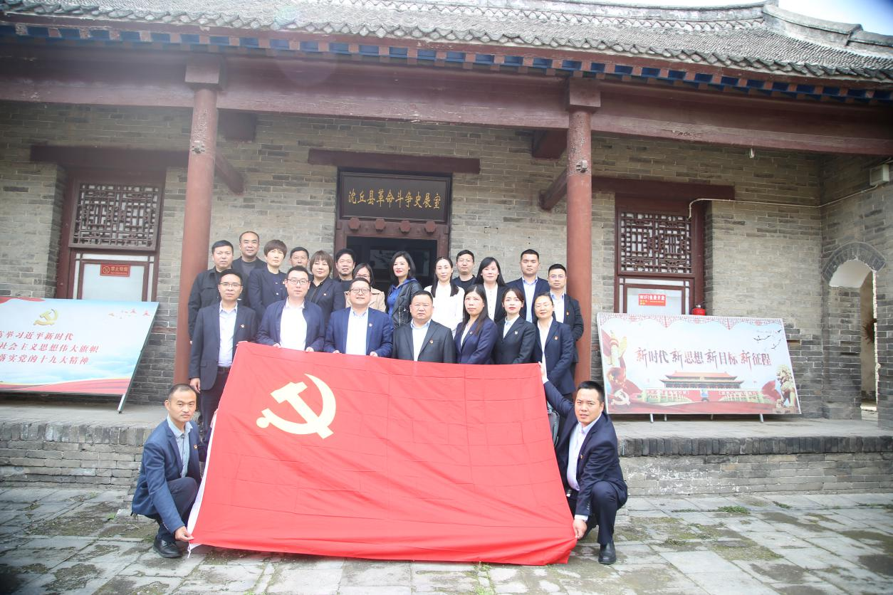 在李鳴鐘故居,沈丘縣郵政分公司全體黨員在丁中州副總的領(lǐng)誓下,全體黨支部黨員站在鮮紅的黨旗前,重溫入黨誓詞,以莊嚴(yán)的宣誓,表達(dá)不忘入黨初心、永葆黨員本色,為黨的事業(yè)奮斗終身的決心。