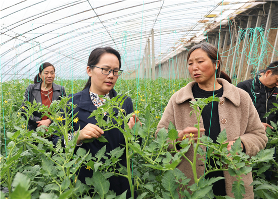 圖為張福麗博士(左二)在張小花大棚指導(dǎo)。