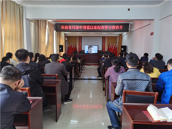 為進一步加強黨風(fēng)廉政建設(shè),持續(xù)推進以案促改制度化常態(tài)化,4月26日下午,市商務(wù)局組織局機關(guān)及二級機構(gòu)全體人員,集中觀看以案促改警示教育片《正風(fēng)反腐就在身邊》第四集《嚴(yán)正家風(fēng)》,不斷提升黨員干部廉潔自律和拒腐防變意識。