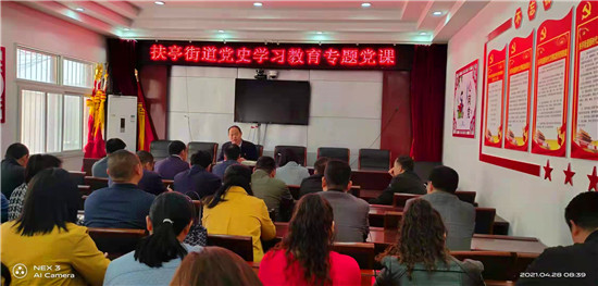重溫百年光輝歷程,感悟黨的初心使命。4月28日上午,扶溝縣扶亭街道辦事處組織開展黨史學(xué)習(xí)教育專題黨課學(xué)習(xí)。黨工委書記趙紅巖以“讀詩詞、學(xué)黨史、頌黨恩、跟黨走”為題進(jìn)行學(xué)習(xí)輔導(dǎo),為機關(guān)全體干部職工講授了一堂生動的專題黨課,進(jìn)一步積極營造了黨史學(xué)習(xí)教育的濃厚氛圍,切實增強了街道機關(guān)黨員干部的政治責(zé)任感和使命感,引導(dǎo)黨員干部做到學(xué)史明理、學(xué)史增信、學(xué)史崇德、學(xué)史力行,推進(jìn)黨史學(xué)習(xí)教育走深走實。