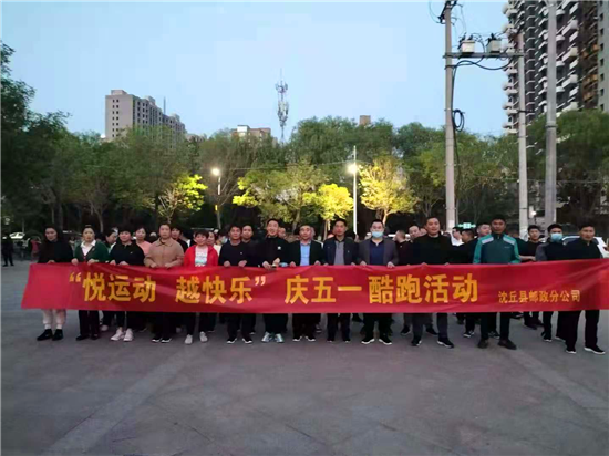 4月28日,為了迎接“五一”勞動(dòng)節(jié),在縣公司、縣工會(huì)倡議下,沈丘縣郵政局全體員工以酷跑的形式來(lái)慶祝這一專屬于最美勞動(dòng)者的專屬節(jié)日。