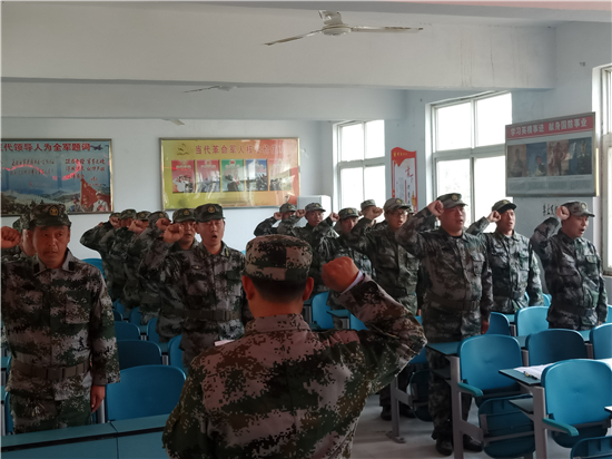 會(huì)議先后宣讀了葉埠口鄉(xiāng)民兵干部任職命令、基干民兵應(yīng)急排編組名單、基干民兵應(yīng)急排表彰決定;民兵應(yīng)急排排長(zhǎng)劉永圈同志帶領(lǐng)民兵進(jìn)行了宣誓、新入隊(duì)民兵代表馬軍輝同志發(fā)言。