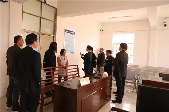 采風團先后參觀了固墻法庭的審判庭、辦公室、廚房等場所,和法庭干警進行深入的交談,隨后在固墻鎮(zhèn)政府參加了座談。