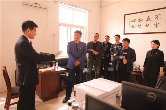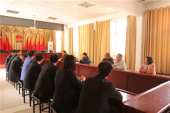 固墻鎮(zhèn)黨委書記徐汝濤對各位作家前來采風、調(diào)研表示歡迎。徐汝濤向采風團介紹了固墻鎮(zhèn)的歷史和發(fā)展狀況,對固墻法庭參與社會治理進行的探索和嘗試給予肯定,對取得的效果給予高度評價。