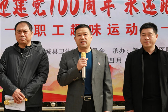 為慶祝中國共產(chǎn)黨建黨100周年,豐富職工精神文化生活和業(yè)余生活,進一步開展全民健身活動,增強干部職工身體素質(zhì),展示廣大干部職工團結(jié)拼搏的精神風貌。4月29日,由鄲城縣衛(wèi)健委主辦,鄲城縣中醫(yī)院承辦的“喜迎建黨100周年 永遠跟黨走”職工趣味運動會在縣衛(wèi)健委舉行??h衛(wèi)健委黨組書記、主任付登霄,縣總工會副主席王滿倉,縣衛(wèi)健委副主任徐濤、劉清俊、肖儉,副科級干部王曉琳,縣第二醫(yī)療健康服務集團縣中醫(yī)院院長水新華出席運動會。由縣衛(wèi)健委、縣第二醫(yī)療健康服務集團總部及所屬醫(yī)共體單位組成的8個代表隊歡聚一堂,共享運動競技的快樂。