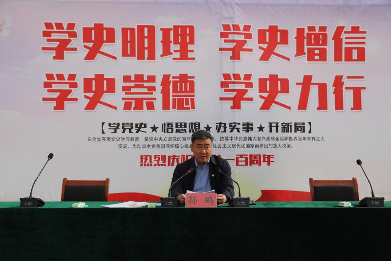 上午8時(shí),黨史學(xué)習(xí)教育課在學(xué)校操場(chǎng)上正式開(kāi)講,孫鵬面對(duì)端坐整齊的全校師生,通過(guò)講故事的方式,從三個(gè)方面展開(kāi)講座。