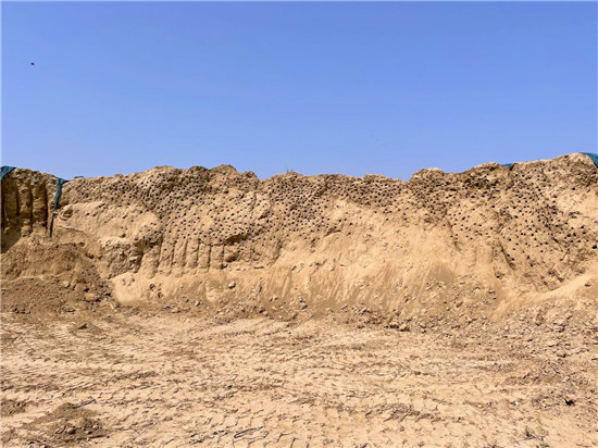 4月30日,記者來到位于周口中心城區(qū)建業(yè)綠色基地附近的建筑工地看到,在長約數(shù)10米,高約5米的裸露黃土堆壁的上部,布滿了如拳頭般大小的巢洞,洞口呈扁圓或橢圓形,遠遠望去,就像山上排列整齊的石窟。當(dāng)時,天空蔚藍無云,成群結(jié)隊的燕子在天空中飛來飛去,清脆的鳥叫聲不絕于耳。由于洞穴較深,無法目測到洞內(nèi)結(jié)構(gòu)。