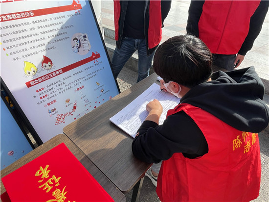 志愿者為獻(xiàn)血人員頒發(fā)榮譽(yù)證書