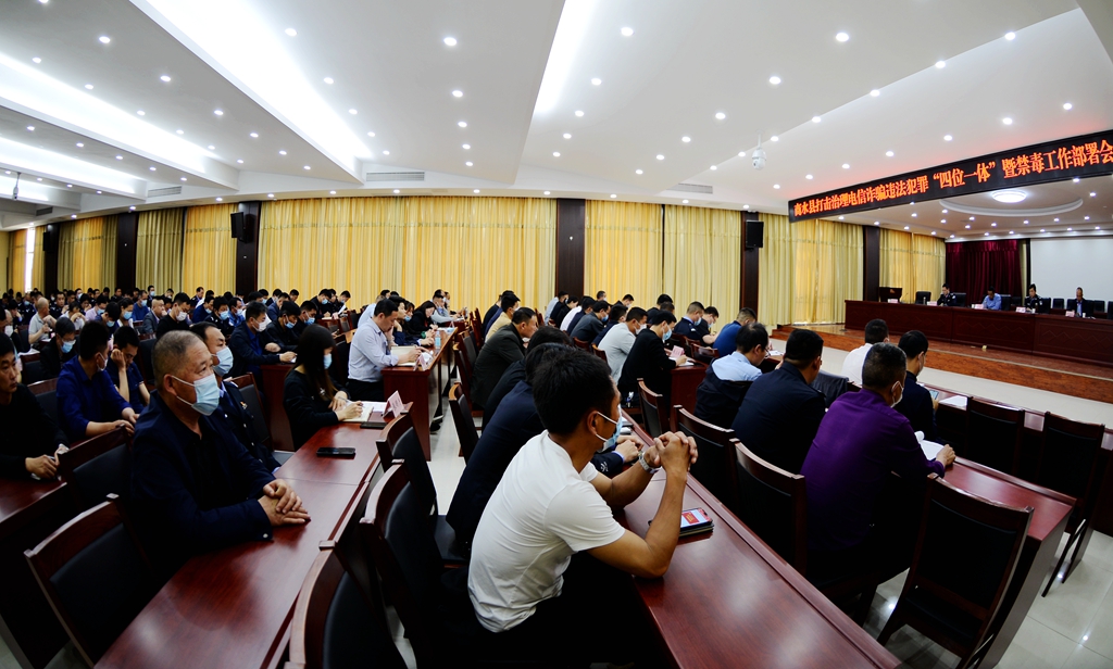 4月30日,商水縣召開打擊治理電信詐騙違法犯罪“四位一體”暨禁毒工作部署會議??h委常委、政法委書記王勇出席會議。