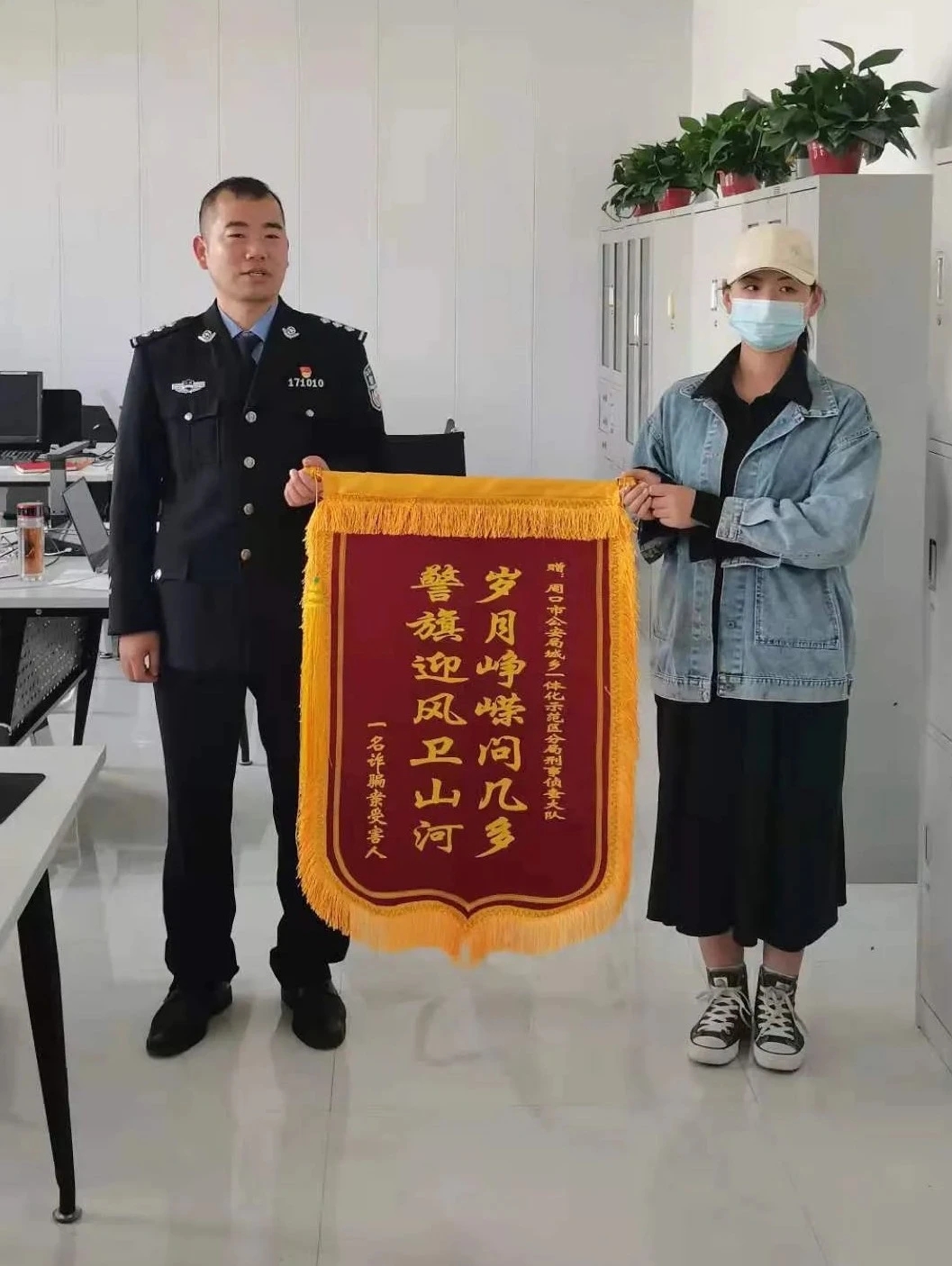 周口日?qǐng)?bào)·周道客戶(hù)端記者 侯國(guó)防記者從周口市公安局獲悉,貴州男子魏某利用周口一高校女生心思單純,騙取其6000多元。近期,周口市公安局示范區(qū)分局通過(guò)積極工作,南下貴州,在當(dāng)?shù)鼐街С峙浜舷?,成功將犯罪嫌疑人魏某抓獲,并追回該女生被騙的錢(qián)財(cái),為受害人挽回了經(jīng)濟(jì)損失。受害人為此特意贈(zèng)送一面錦旗表示感謝。