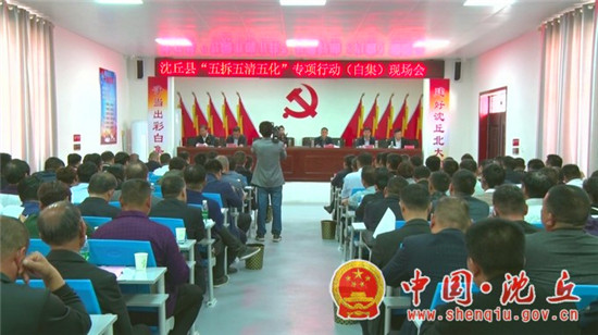 會議由呂孝坤主持。會上,白集鎮(zhèn)黨委書記于海濤作典型發(fā)言,縣扶貧辦負責人宣讀了《沈丘縣“五拆五清五化一改”村莊專項行動實施方案》。