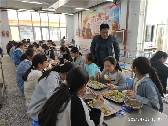 鹿邑縣實(shí)驗(yàn)中學(xué)實(shí)行班主任陪餐制,4月25日中午,記者見(jiàn)到一邊與學(xué)生就餐,一邊與其聊學(xué)習(xí)、話生活、講未來(lái)的李守崗。當(dāng)問(wèn)到為何不再修養(yǎng)一段時(shí)間時(shí),李守崗說(shuō):“這些學(xué)生我?guī)Я巳?,放心不下呀!”樸?shí)的話語(yǔ),彰顯的是一名教師對(duì)教育的忠誠(chéng)、對(duì)學(xué)子的摯愛(ài)。