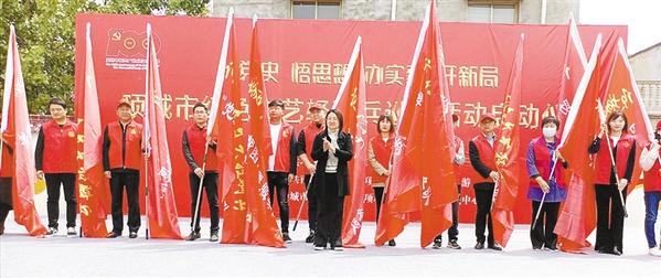 4月27日,由項城市委宣傳部主辦的“學黨史 悟思想 辦實事 開新局——項城市紅色文化輕騎兵巡講活動啟動儀式”在南頓鎮(zhèn)水牛劉村舉行。市委常委、宣傳部長劉娟出席啟動儀式,來自全市14支紅色文藝輕騎兵小分隊140人參加了活動。 記者 楊光林 通訊員李高華 攝