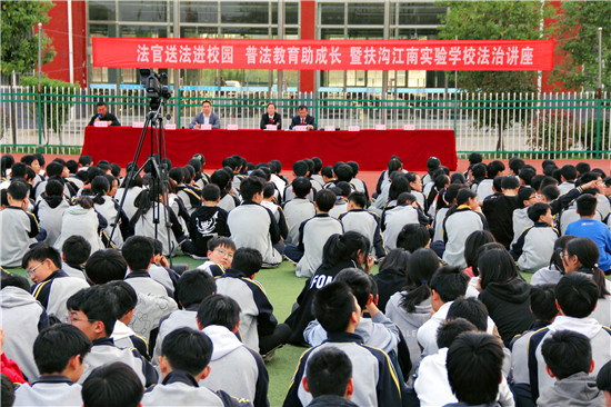 法治講座開(kāi)始前,扶溝江南實(shí)驗(yàn)學(xué)校校領(lǐng)導(dǎo)進(jìn)行了熱情洋溢的致辭,對(duì)法院法官們的到來(lái)表示熱烈的歡迎,對(duì)法官們來(lái)校開(kāi)展普法教育表示誠(chéng)摯的謝意。扶溝法院黨組成員、副院長(zhǎng)翟紅衛(wèi)在講話中指出,青少年是祖國(guó)的希望,是民族的未來(lái),愛(ài)護(hù)青少年,守護(hù)青春,關(guān)注成長(zhǎng),是全社會(huì)的責(zé)任,更是人民法院和法官的神圣職責(zé)和光榮使命。法院將通過(guò)堅(jiān)持不懈的努力,開(kāi)展好“送法進(jìn)校園”活動(dòng),讓廣大青少年真切感受到司法的關(guān)愛(ài)、社會(huì)的溫暖,遠(yuǎn)離違法犯罪,健康快樂(lè)成長(zhǎng)。