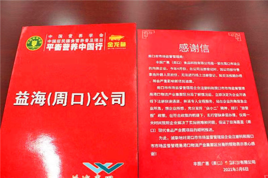 5月7日下午,一封來自豐廚廣惠(周口)食品科技有限公司的感謝信被送到周口市市場監(jiān)管局港區(qū)分局,信中通過飽含真情的言辭,道出了港區(qū)“政企一家親”深情厚誼。