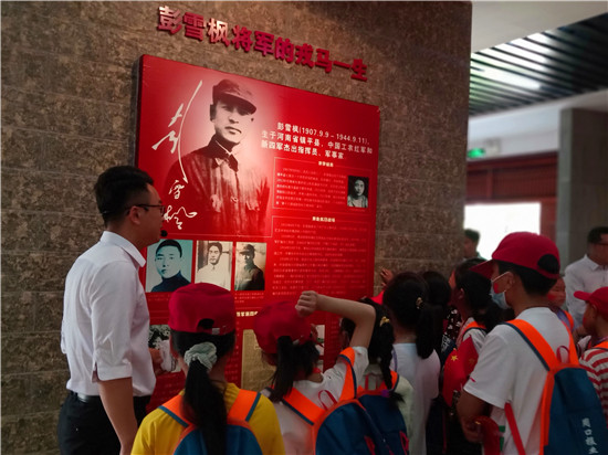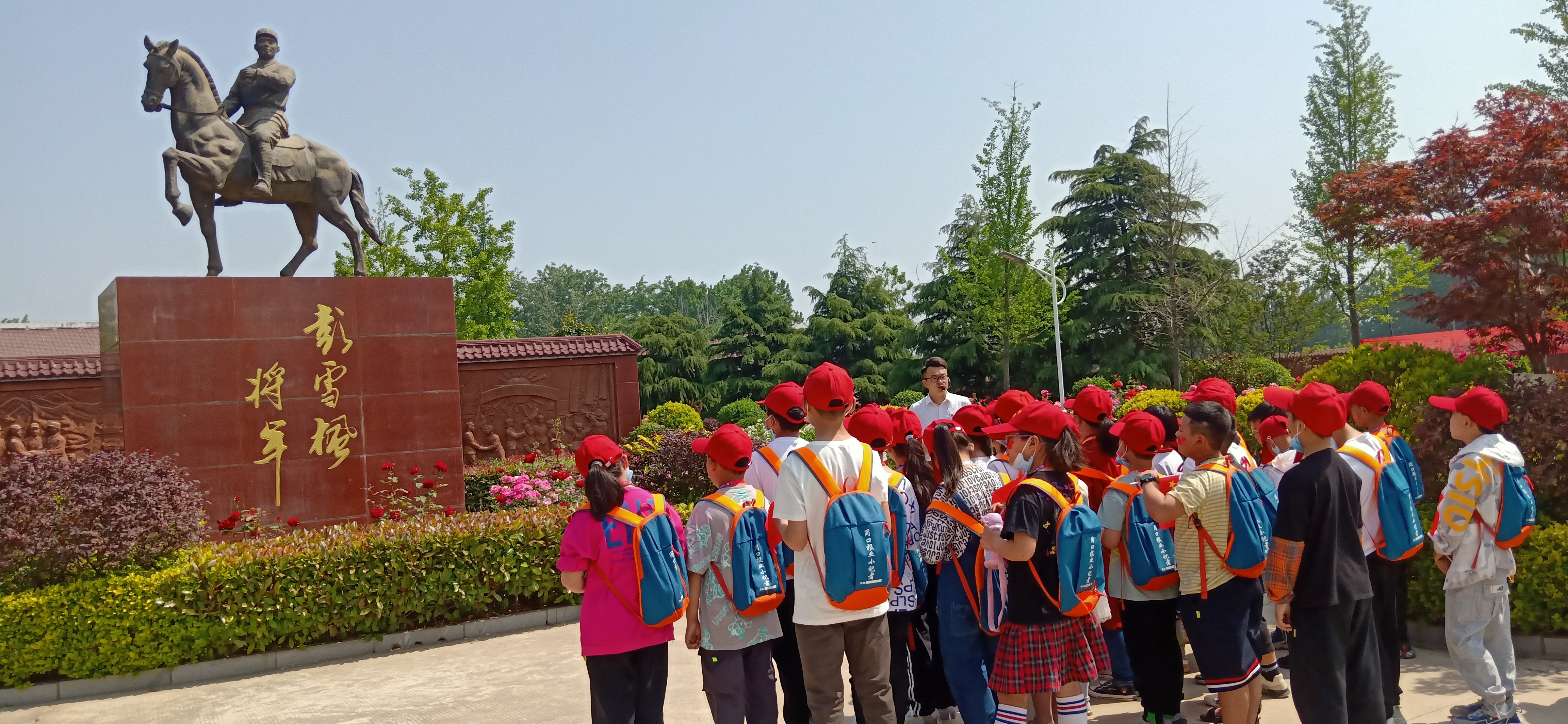 在短暫路途中,小記者們?cè)缫呀?jīng)按耐不住期待的心情,總感覺(jué)4公里的路程相當(dāng)遙遠(yuǎn)。10多分鐘行程后,車輛到達(dá)目的地。此時(shí),杜崗會(huì)師紀(jì)念館看上去莊嚴(yán)寧?kù)o,彭雪楓將軍躍馬馳騁的塑像高大威武,舉目可見(jiàn),一種仰慕之情頓時(shí)令人油然而生。
