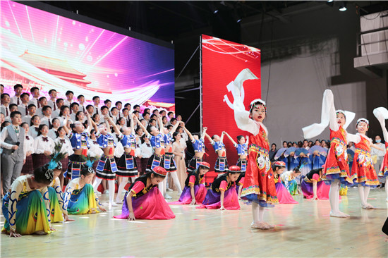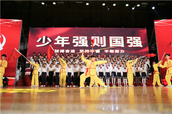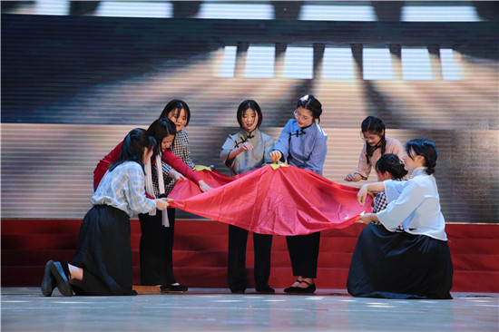 《百年紅船》大氣磅礴,展現(xiàn)了“崢嶸歲月、風雨兼程,敢闖敢領、百折不撓”的歷史畫卷;《千里躍進大別山》將誦讀與雜技融合,講述了解放戰(zhàn)爭中這一個偉大轉(zhuǎn)折的波瀾壯闊;《愛國三問》振聾發(fā)聵,激發(fā)了大家為實現(xiàn)中華民族偉大復興作出新貢獻的熱情;《繡紅旗》催人淚下,演繹了革命烈士為了新中國成立出生入死,前赴后繼的斗爭精神;《青春中國》《頌百年芳華、奏強國樂章》《獻給黨的贊歌》等,高亢激昂的誦讀聲和歌聲,青春洋溢的優(yōu)雅舞姿,抒發(fā)著廣大青少年對偉大祖國和中國共產(chǎn)黨的無比熱愛之情,精彩的演出贏得場下觀眾陣陣掌聲。
