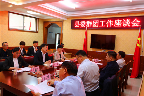 5月11日,鹿邑縣委群團組織座談會在縣總工會四樓會議室召開,縣委書記李剛出席會議并講話,縣委副書記許四軍主持會議,縣委常委、縣委辦公室主任侯自峰,縣人大常委會副主任、縣總工會主席王新民參加會議。