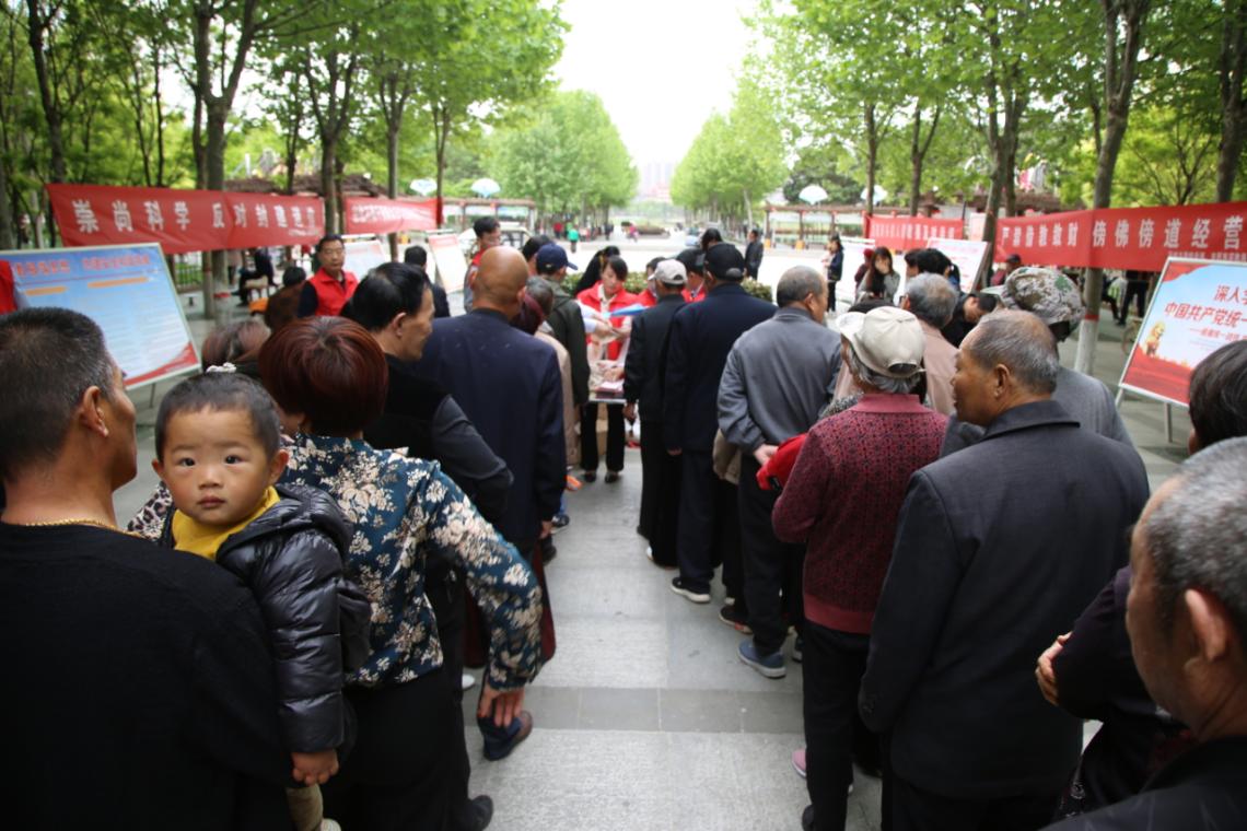 活動現(xiàn)場發(fā)放了《習(xí)近平總書記關(guān)于民族工作重要論述選編》《宗教工作政策法規(guī)宣傳冊》《宗教事務(wù)條例》《河南省宗教事務(wù)條例》等宣傳手冊2000余冊,發(fā)放宗教政策法規(guī)明白卡和民族團結(jié)進步宣傳彩頁3000張及印有宣傳標(biāo)識的手提袋、紙質(zhì)水杯、圍裙1800套。同時,擺放主題鮮明的宣傳展板30塊,懸掛宣傳標(biāo)語、橫幅40條,突出活動主題,增強了活動的吸引力,營造了良好的現(xiàn)場宣傳活動氛圍。