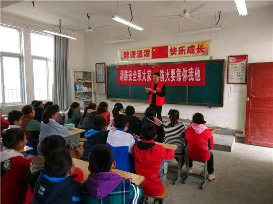 “地震來時(shí)不要慌,躲避時(shí)不要靠近窗邊或陽臺(tái),要選擇安全通道迅速撤離。”“定期檢查廚房及家中的電氣線路,不要私拉亂接電線,自覺排查整改身邊的火災(zāi)隱患?!被顒?dòng)中,志愿者在主要街道懸掛宣傳標(biāo)語,向商戶、居民發(fā)放宣傳資料,并詳細(xì)講解日常生活中防災(zāi)減災(zāi)注意事項(xiàng),提醒大家注意用火、用電安全,避免火災(zāi)事故的發(fā)生。同時(shí),志愿者還深入縣北城辦事處王浩莊小學(xué)進(jìn)行消防安全知識(shí)宣傳,就常見火災(zāi)類型及發(fā)生火災(zāi)后如何進(jìn)行自救逃生等內(nèi)容進(jìn)行現(xiàn)場宣講。