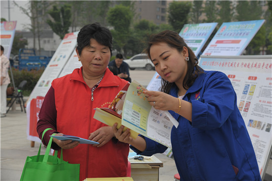 5月12日,商水縣燃氣公司人員在陽城公園向市民講解廚房安全知識。