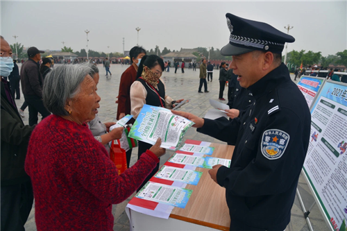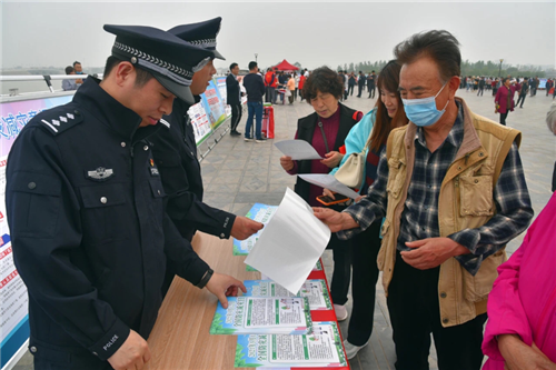 5月12日,是第13個全國防災減災日。當日上午,淮陽區(qū)公安局組織民警在太昊陵廣場開展“5·12防災減災”宣傳活動,向群眾科普自然災害類、事故災難類應急避險知識和公共安全基礎知識。