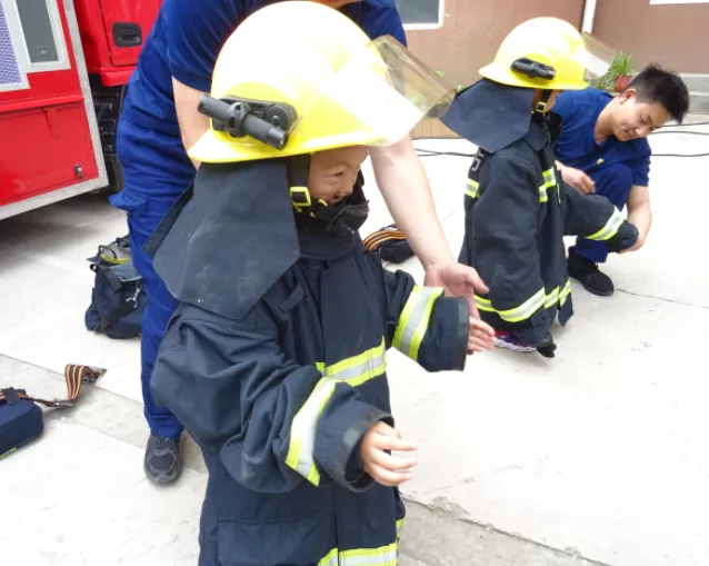 培訓(xùn)中,消防大隊宣傳人員利用精心準(zhǔn)備的課件內(nèi)容,結(jié)合幼兒園孩子年齡小、好奇心強、安全意識淡薄等特點,采用通俗易懂、幽默風(fēng)趣的語言為小朋友們講解如何防止火災(zāi)發(fā)生、發(fā)生火災(zāi)時如何逃生、如何報警、如何使用滅火器等消防安全常識。為了讓孩子們真實地體驗一番,在工作人員的帶領(lǐng)下,孩子們紛紛試戴消防帽、試穿滅火防護(hù)服,充分體驗了一回當(dāng)消防員的感受。