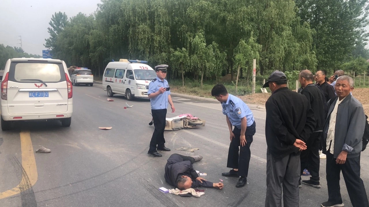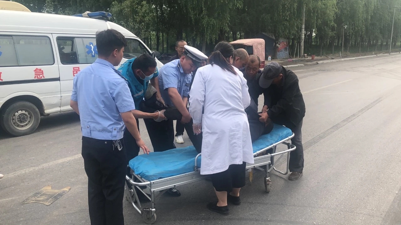 5月12日15時40分許,鹿邑縣交警大隊城區(qū)二中隊民警巡邏至311國道前羅樓路段時,發(fā)現(xiàn)前方路段發(fā)生一起交通事故,電動車駕駛?cè)颂稍诘厣?。巡邏民警迅速下車查看,見電動車駕駛?cè)耸軅麌乐?,不能動彈,立即撥打?20和110,并幫助傷者聯(lián)系其家人,對事故現(xiàn)場進行保護,勸散圍觀群眾,之后又協(xié)助醫(yī)護人員將受傷男子抬上救護車。而后,巡邏民警又協(xié)同事故民警勘察現(xiàn)場,恢復(fù)事故路段交通,確保了轄區(qū)道路暢通。