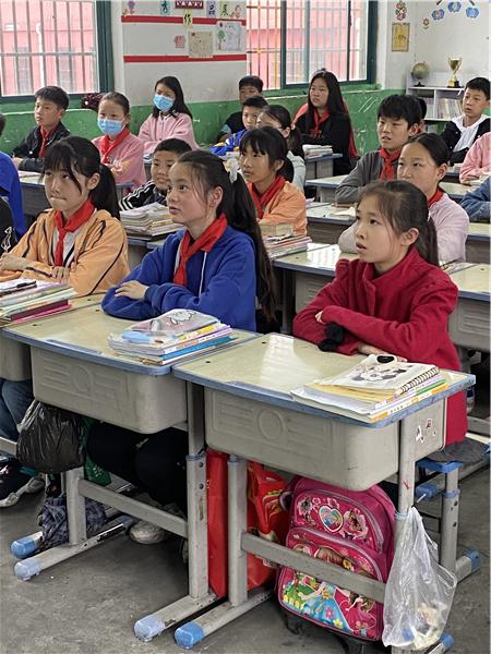 教室里,同學們聚精會神地聽著老師講革命先輩長征的故事,從巧渡金沙江到飛奪瀘定橋,圖文并茂,讓學生們從小知黨史、感黨恩,一顆紅心跟黨走,傳承紅色基因。