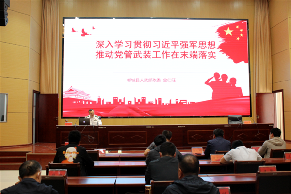 5月18日下午,鄲城縣委常委、人武部政委金仁旺結合黨史學習教育,以《深入學習貫徹習近平強軍思想 推動黨管武裝工作在末端落實》為題,為全縣2021年春季干部理論培訓班學員上專題黨課。