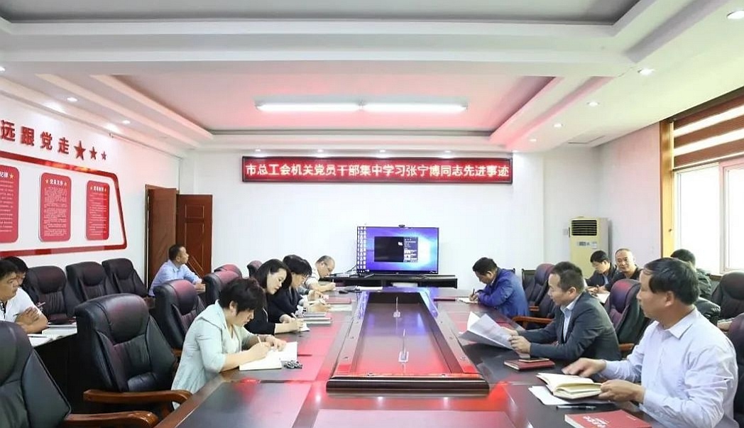 5月18日,項城市總工會組織全體黨員干部集中學習張寧博同志先進事跡。
