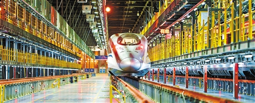 鄭州南動(dòng)車所對(duì)標(biāo)準(zhǔn)組動(dòng)車進(jìn)行檢修。近年來(lái),高鐵新線的陸續(xù)開(kāi)通,為鄭州逐步建設(shè)成國(guó)際性綜合交通樞紐提供了強(qiáng)勁動(dòng)力。 王 錚攝(中經(jīng)視覺(jué))