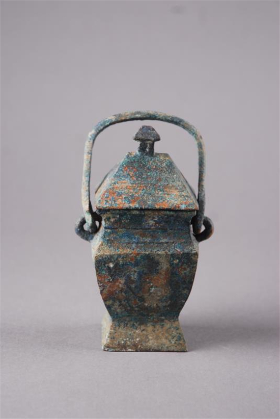 該墓藏酒器多是一個突出的特點,酒器類的器物則應(yīng)有盡有,既有飲酒用的爵、觚、角、觶,也有盛酒用的尊、觥、卣、罍。還有溫酒用的斝,取酒用的勺以及盛酒或酒水調(diào)和用的盉[hé]等。尤其是“長子口銅提梁卣”的發(fā)現(xiàn),成為古墓最有特色的隨葬品之一。該文物是西周早期文物,通高30厘米,口長直徑13.5厘米,短徑10.8厘米。器體橢圓,拱形扁提梁,兩端有環(huán)與器兩側(cè)半環(huán)狀耳套接。蓋內(nèi)壁和器內(nèi)底均有銘文“長子口”3字。出土?xí)r器內(nèi)有1000克左右的液體,經(jīng)過檢測得知所盛是酒。