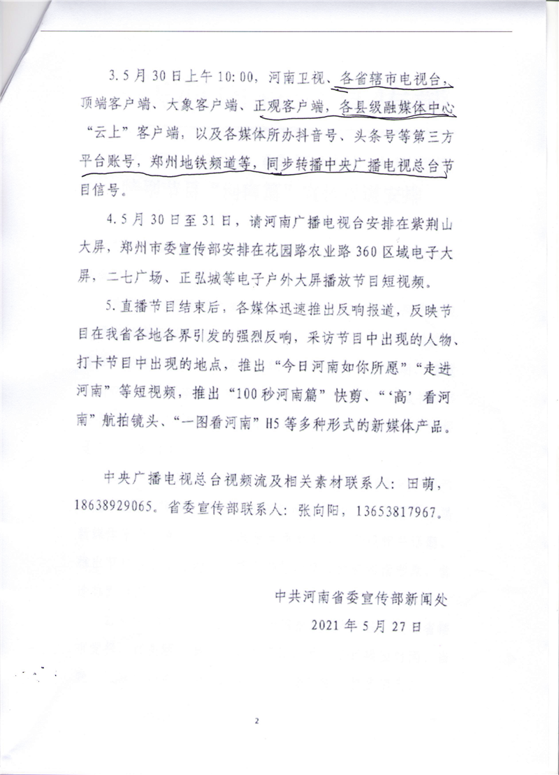 中央廣播電視總臺(tái)《今日中國(guó)》大型直播特別節(jié)目“河南篇”宣傳報(bào)道安排