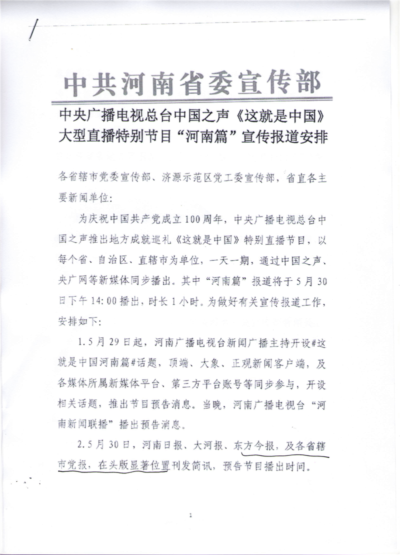 中央廣播電視總臺(tái)中國(guó)之聲《這就是中國(guó)》大型直播特別節(jié)目“河南篇”宣傳報(bào)道安排