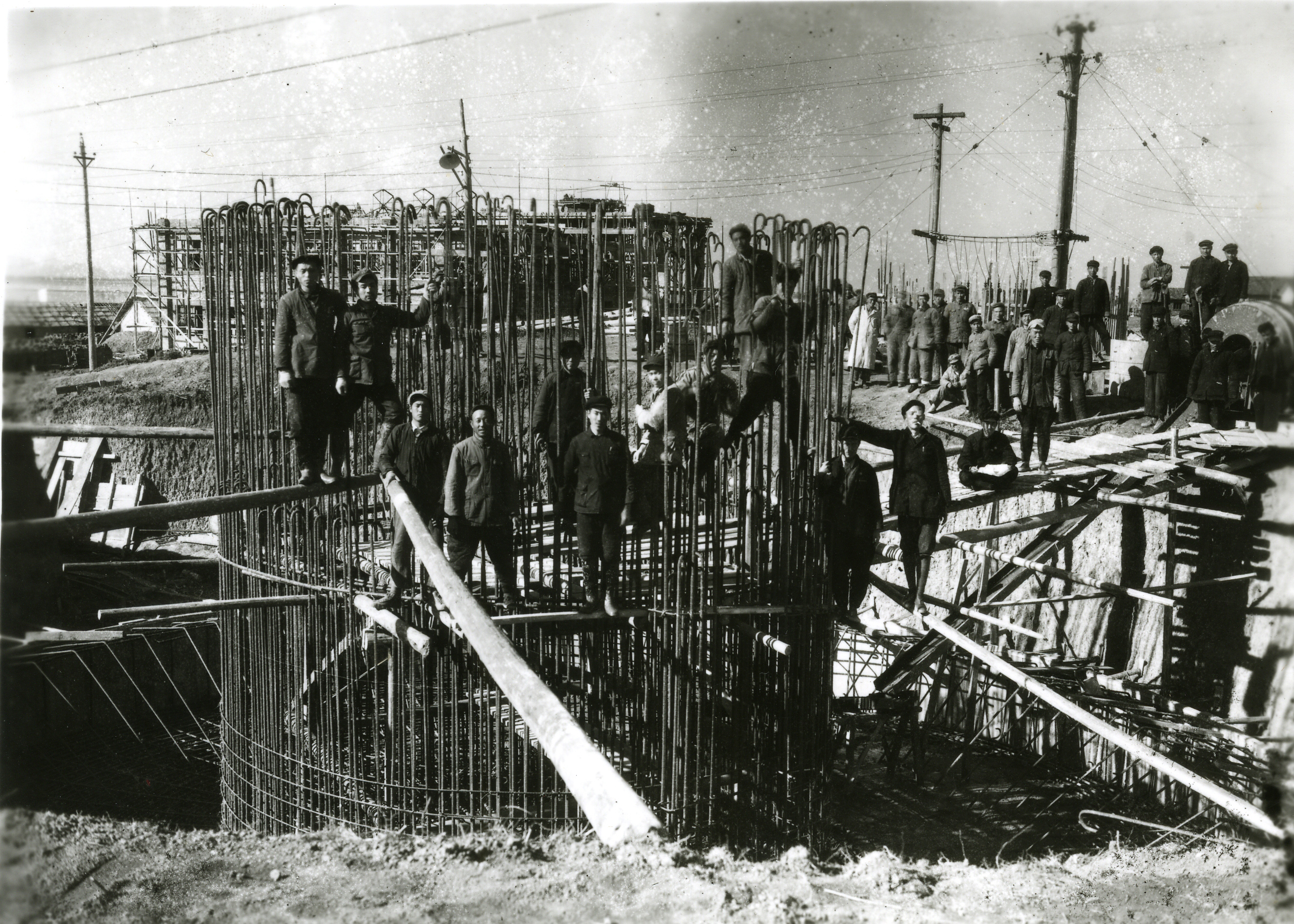 圖1:建國初期,銅官山礦務(wù)局自備電廠火熱的建設(shè)工地。圖片由銅陵日?qǐng)?bào)社提供