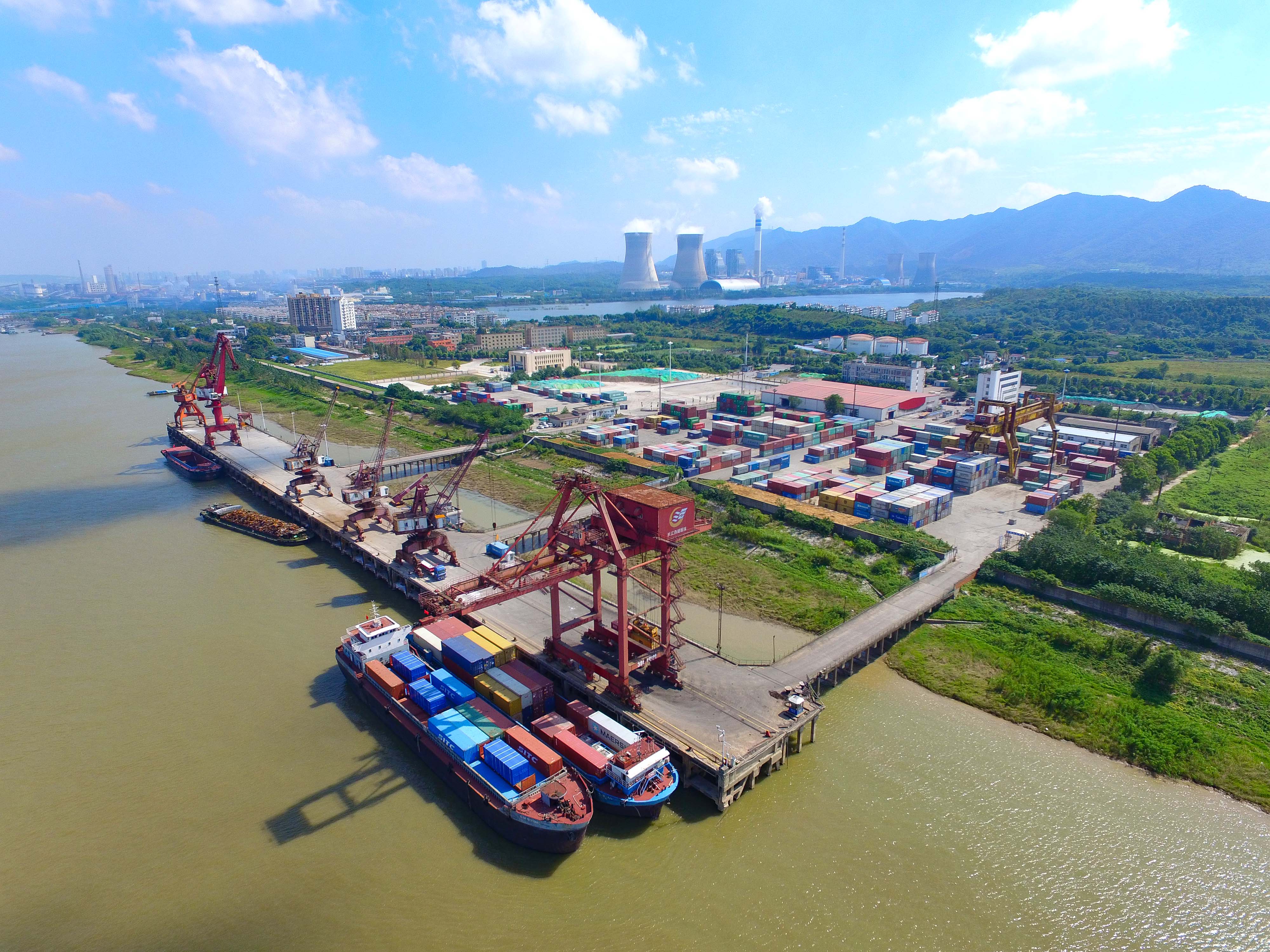 圖3:在安徽銅陵港長江外貿(mào)碼頭,港口機(jī)械在裝卸集裝箱物資。安徽銅陵是我國重要的銅工業(yè)基地,銅陵港是長江萬噸級(jí)輪船終點(diǎn)港。銅陵日?qǐng)?bào)記者 詹俊 攝