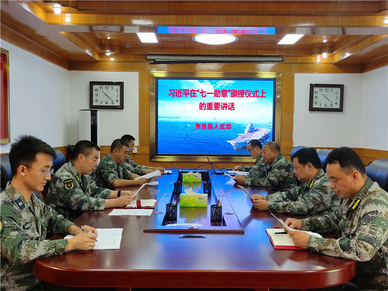 該縣人武部政委李峰首先帶領(lǐng)大家深入學(xué)習(xí)了《習(xí)近平在“七一勛章”頒授儀式上的重要講話》《河南省軍區(qū)黨委作出向王占山同志學(xué)習(xí)的決定》等文件精神,他指出,王占山同志為了黨,為了國家沖鋒在前,不怕犧牲,為我國革命事業(yè)立下了赫赫戰(zhàn)功,在全民黨史教育的大背景下,我們學(xué)習(xí)功勛黨員事跡,奮進(jìn)國防動(dòng)員事業(yè),正當(dāng)其時(shí)。
